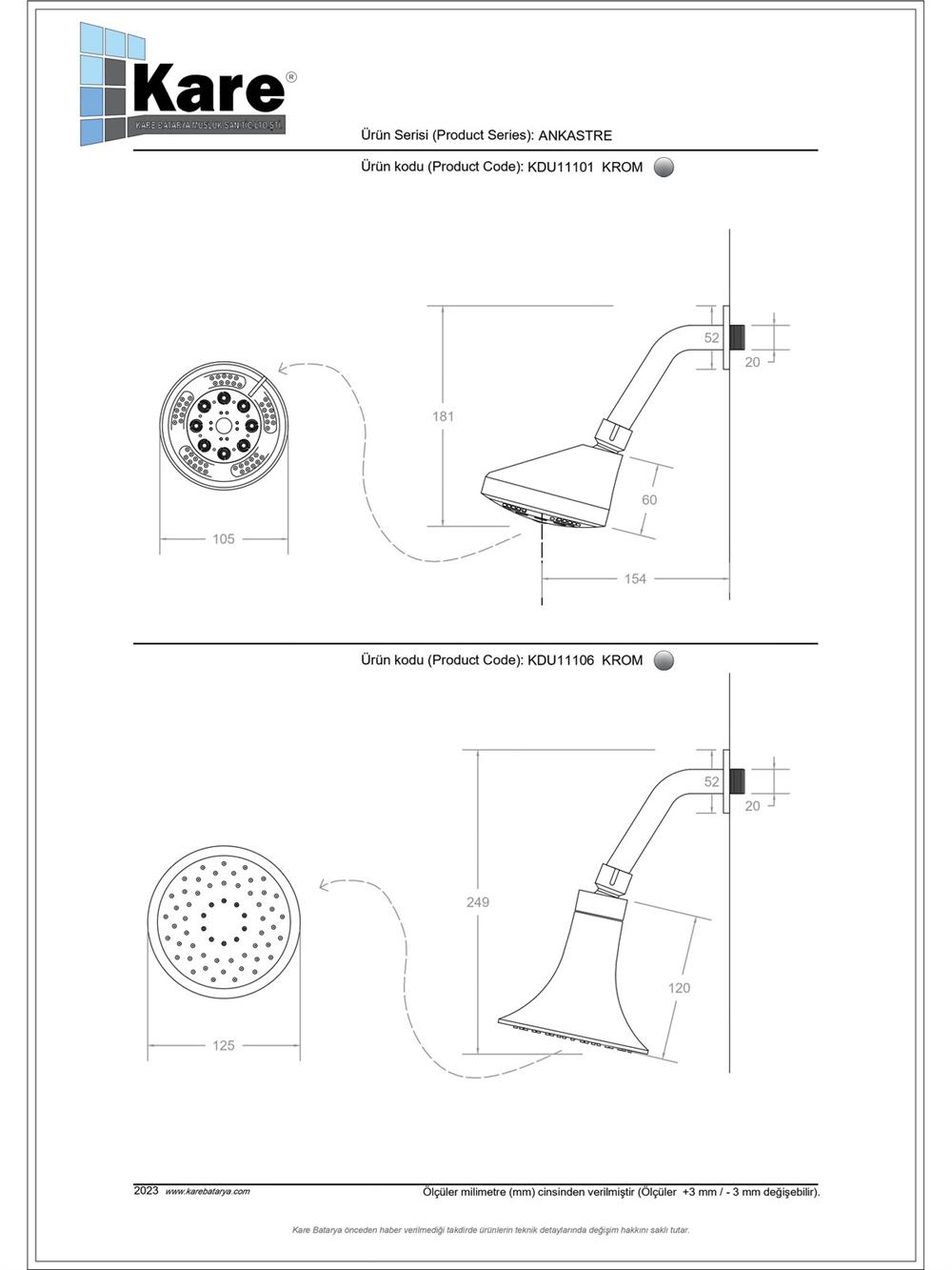 -G 1/2 Metal Boru ve Ayna dahildir.