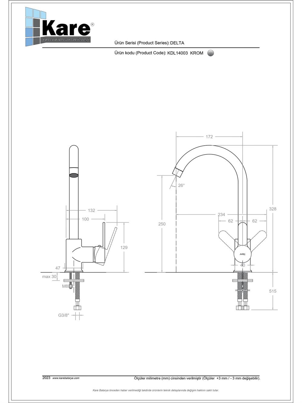- Ürününüzün uzun ömürlü ve garanti kapsamında olabilmesi için filtreli ara musluk kullanılması tavsiye edilir.