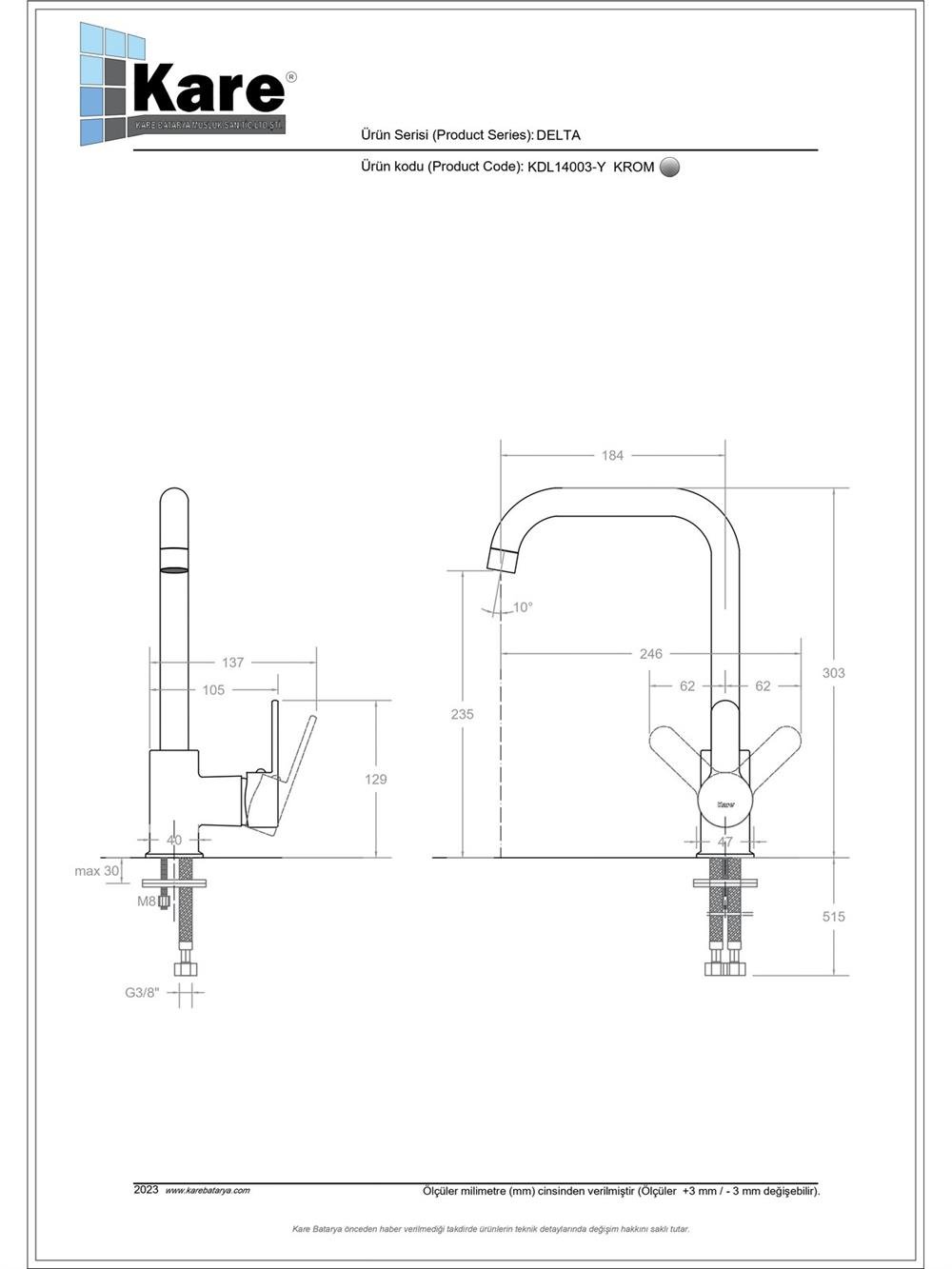 - Kartuş Özelliği : Isı ve debi ayarlı seramik kartuş
