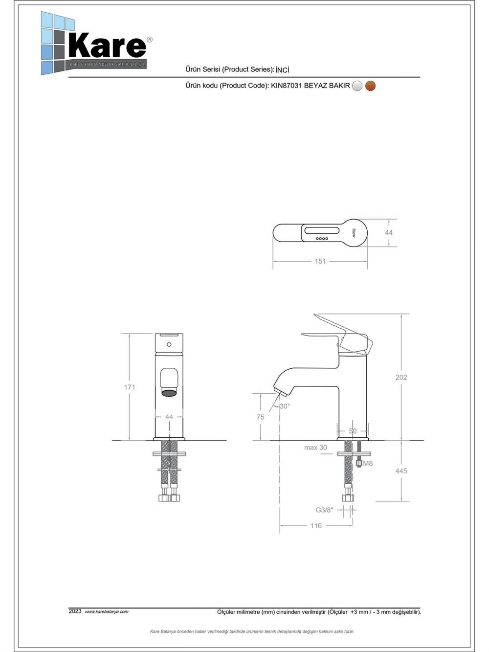 - Kartuş Özelliği : Isı ve debi ayarlı seramik kartuş