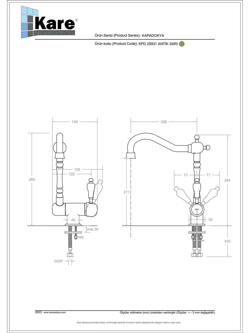 - Kartuş Özelliği : Isı ve debi ayarlı seramik kartuş