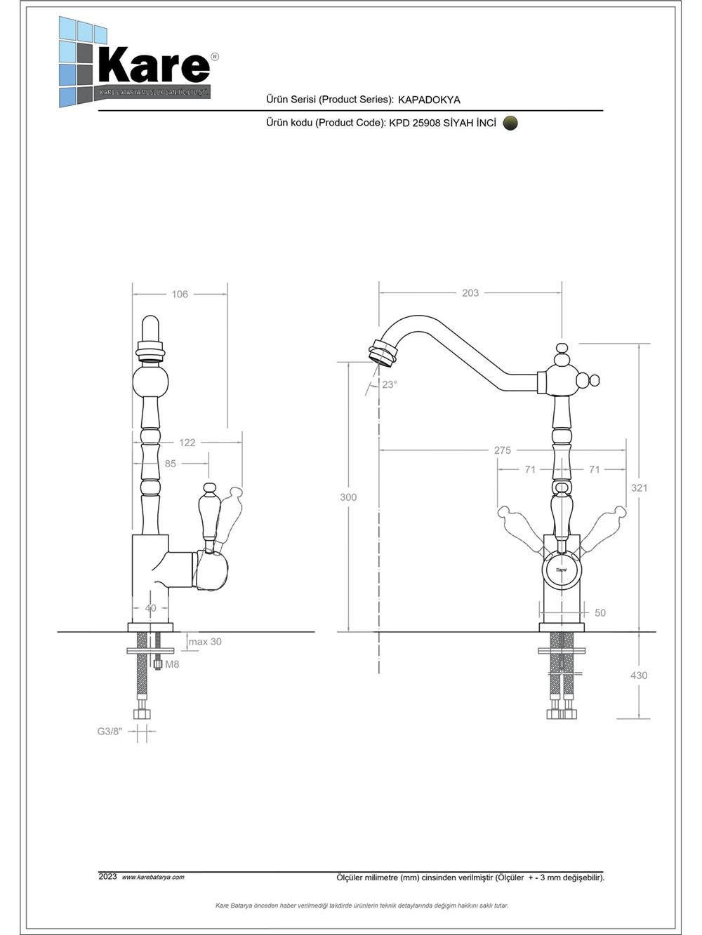 - Kartuş Özelliği : Isı ve debi ayarlı seramik kartuş
