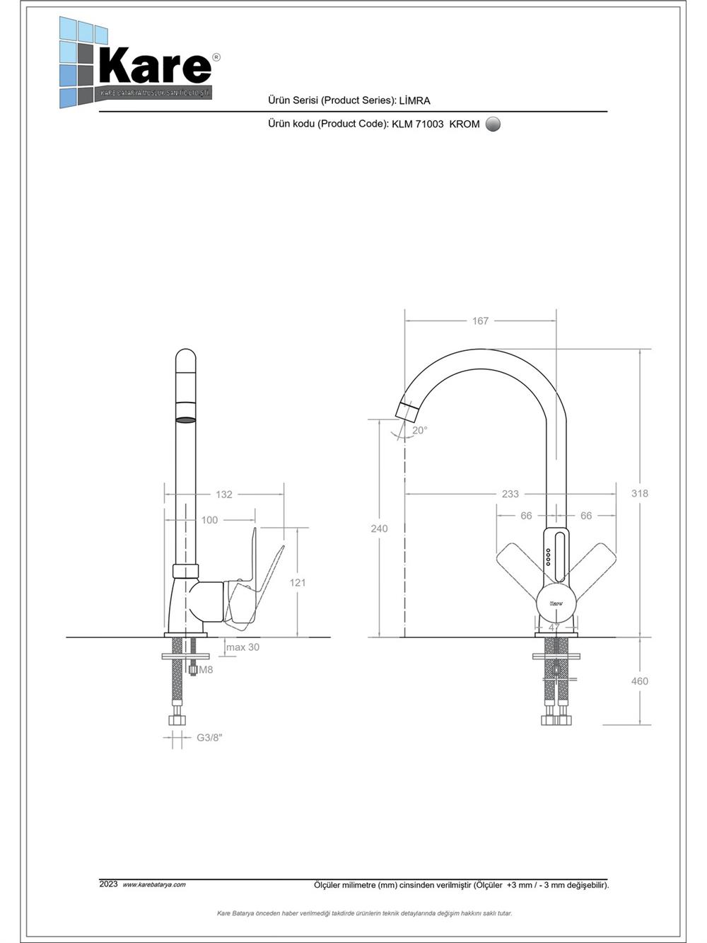 - Ürününüzün uzun ömürlü ve garanti kapsamında olabilmesi için filtreli ara musluk kullanılması tavsiye edilir.