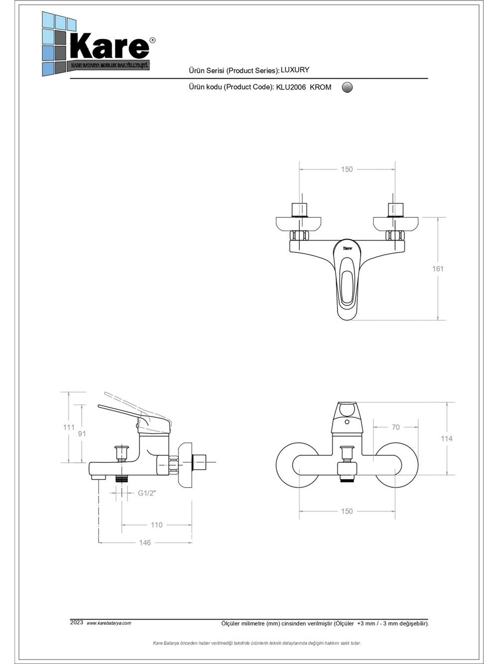 - Kartuş Özelliği : Isı ve debi ayarlı seramik kartuş