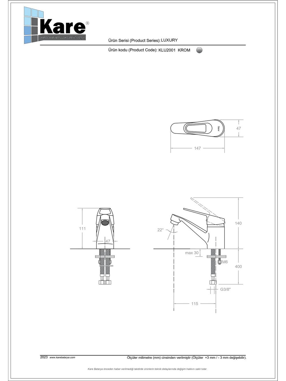 - Kartuş Özelliği : Isı ve debi ayarlı seramik kartuş
