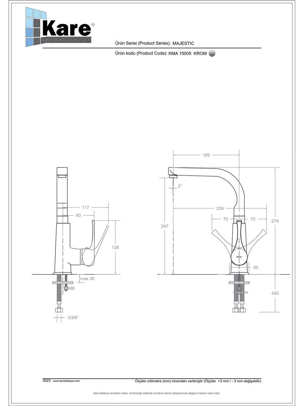 - Kartuş Özelliği : Isı ve debi ayarlı seramik kartuş