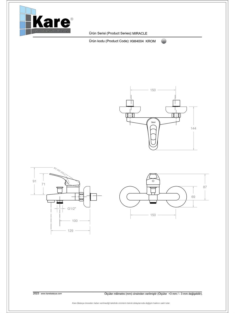 - Kartuş Özelliği : Isı ve debi ayarlı seramik kartuş