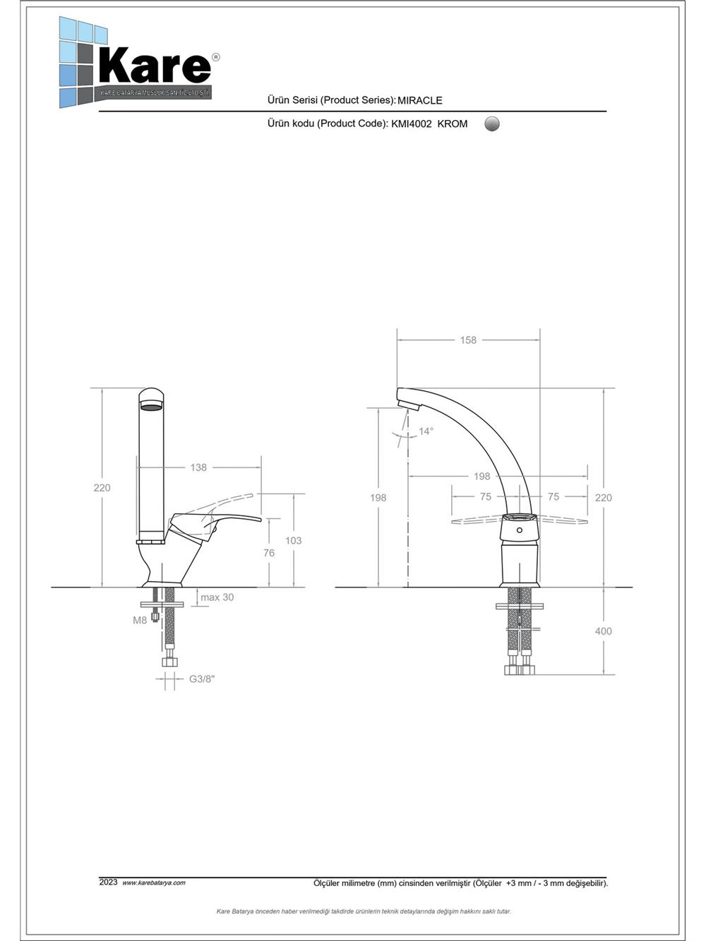 - Ürününüzün uzun ömürlü ve garanti kapsamında olabilmesi için filtreli ara musluk kullanılması tavsiye edilir.