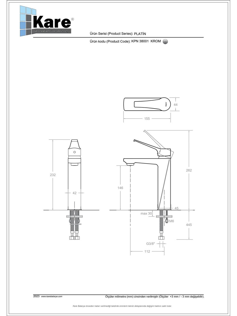 Platin Mix Lavabo Bataryası (KPN38001)
