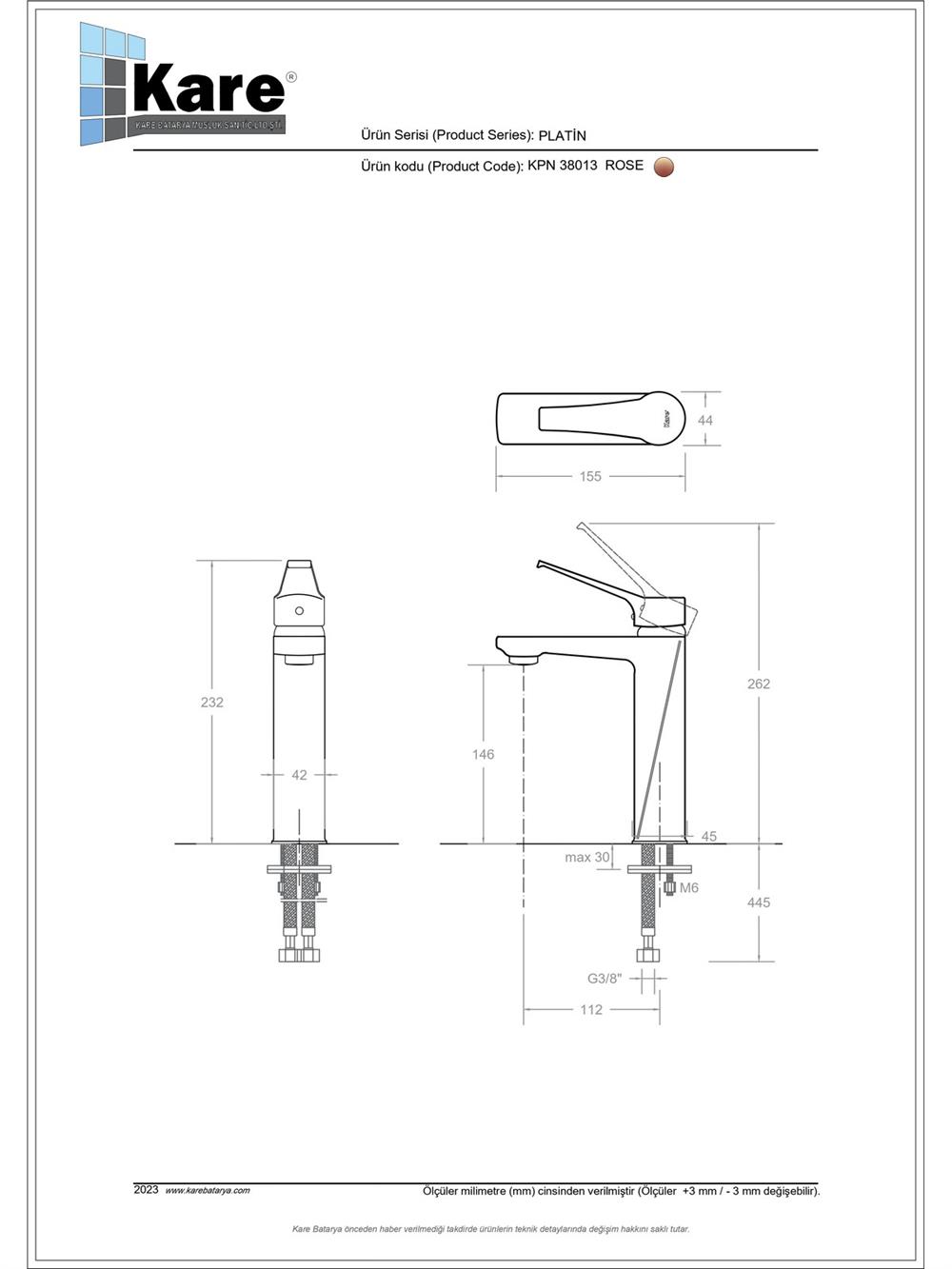 - Kartuş Özelliği : Isı ve debi ayarlı seramik kartuş